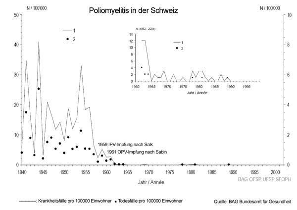 1956-1966 traten im Norden Neuseelands sehr viele Fälle von SSPE(subakut sklerosierende Panenzephalitis) auf. Bei dieser Erkrankung kommt es zu einer langsamen Zerstörung des Gehirns. Für den grossen Ausbruch(mehr als hundertmal so gross wie erwartet), machte man die Massenimpfung ab 1956 mit dem Salk-Impfstoff (Spritzimpfung) verantwortlich. So heisst es :" Die Verabreichung des Salk-Impfstoffes in Neuseeland stand im Zusammenhang mit dem AUftreten von SSPE. Die Vorstellung, eine unübliche Reaktion auf eine Maserninfektion (siehe Masern) sei die einzige Ursache für SSPE, lässt sich nicht mit den Beobachtungen in Neuseeland vereinbaren.(Baguley DM, et al, 1973, Lancet, 6.Oktober, 763-765)